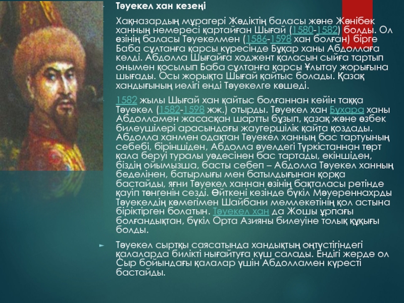 Слайд 24Ташкент қаласы қазақ хандығына қараған соң оны Жәнібек ханның немересі, Жалым сұлтанның баласы Тұрсын