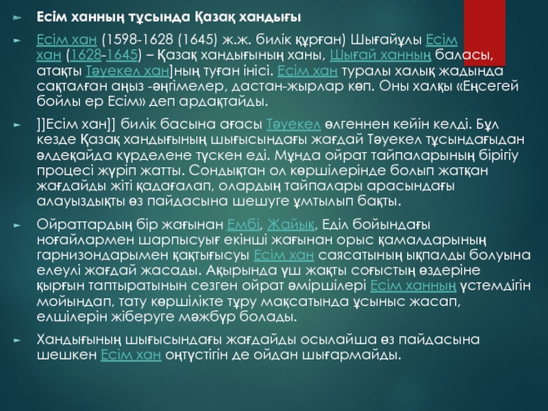 Слайд 21Есім ханның тұсында Қазақ хандығы