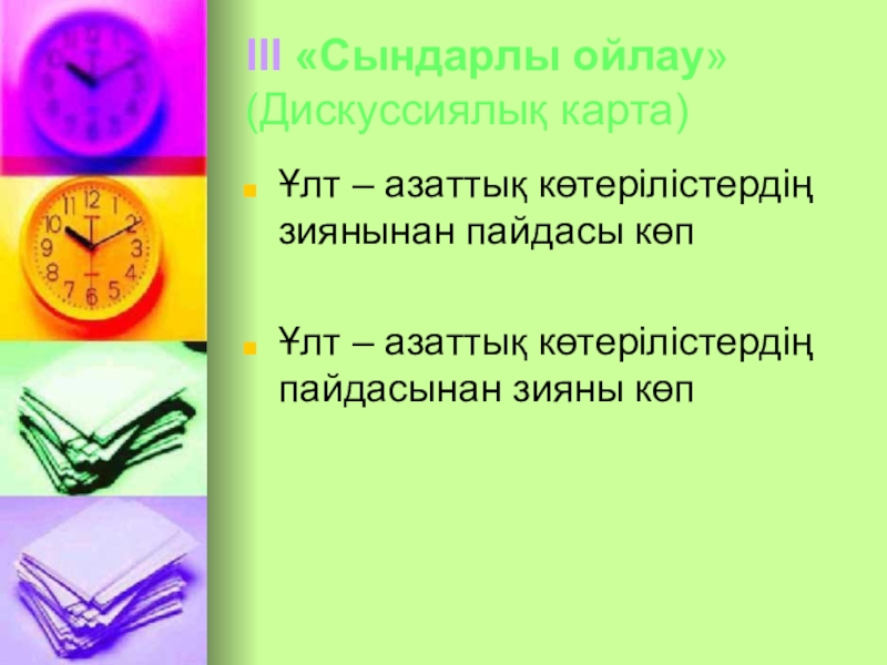 Слайд 16ІІІ «Сындарлы ойлау» (Дискуссиялық карта)