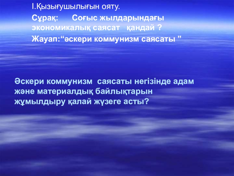 Сұрақ: Соғыс жылдарындағы экономикалық саясат қандай ?