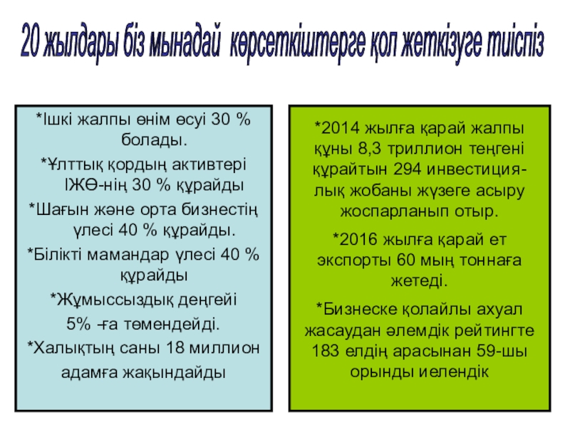 20 жылдары біз мынадай көрсеткіштерге қол жеткізуге тиіспіз