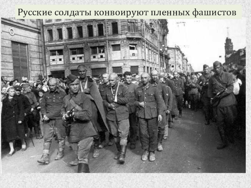 Слайд 63Русские солдаты конвоируют пленных фашистов