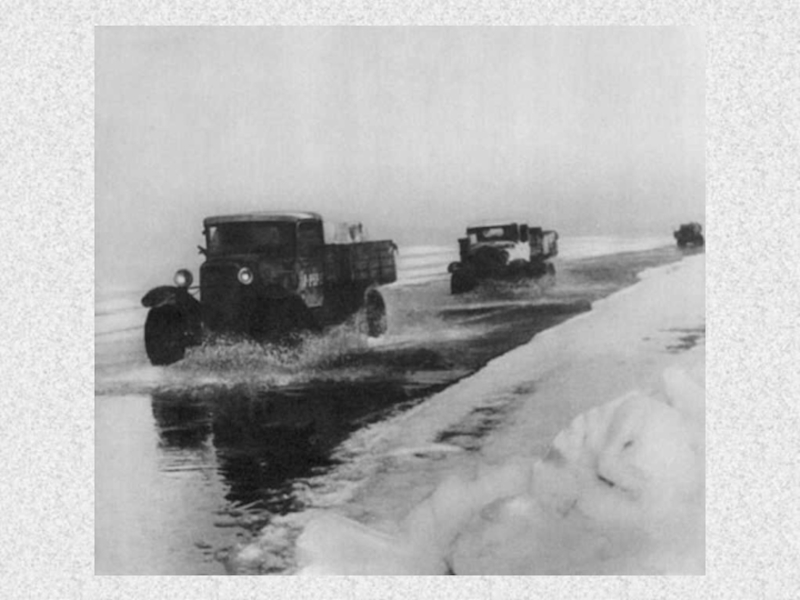 Слайд 39Дорога по льду Ладожского озера – «Дорога жизни»