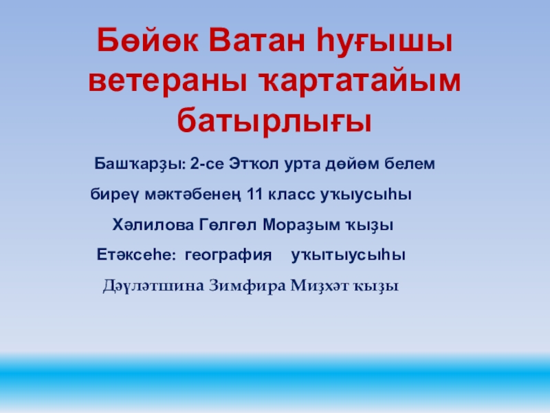 урта дөйөм белем биреү мәктәбенең 11 класс уҡыусыһы