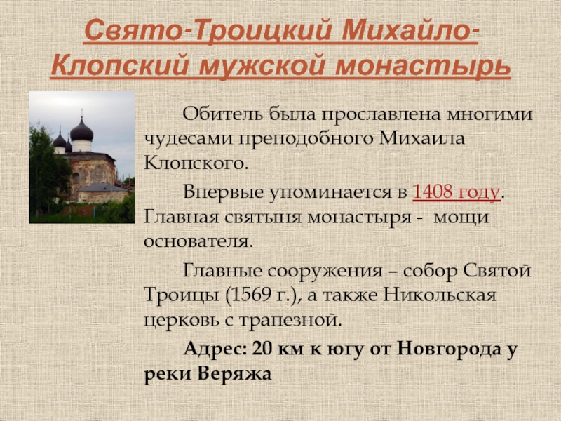 Свято-Троицкий Михайло-Клопский мужской монастырь