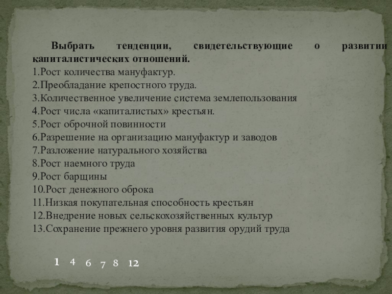 Задание. На основе данного текста укажите факты, свидетельствующие о начале разложения феодально – крепостнической системы.