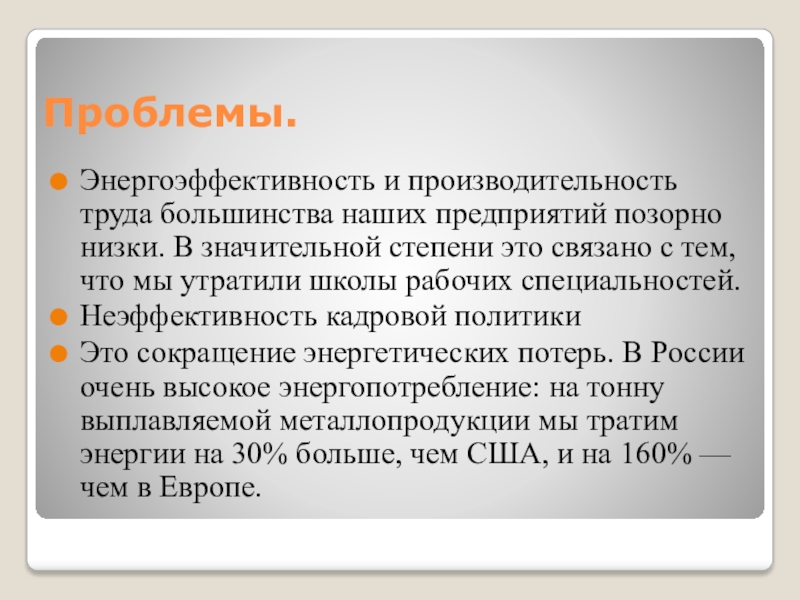 Энергоэффективность и производительность труда большинства наших предприятий позорно низки. В значительной