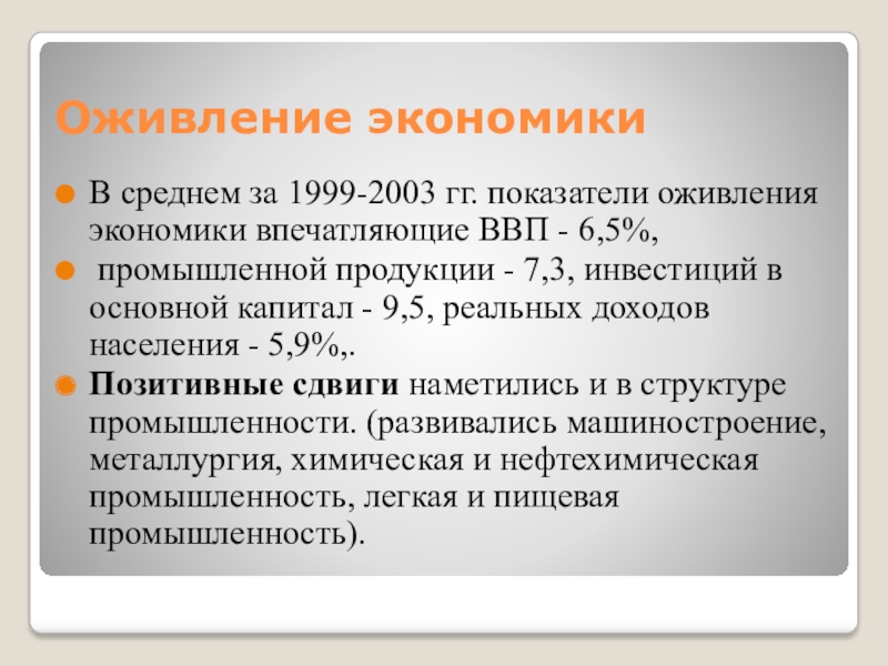 В среднем за 1999-2003 гг. показатели оживления экономики впечатляющие ВВП