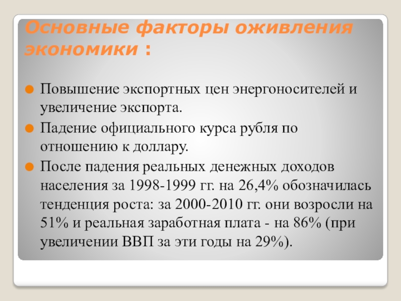 Основные факторы оживления экономики :