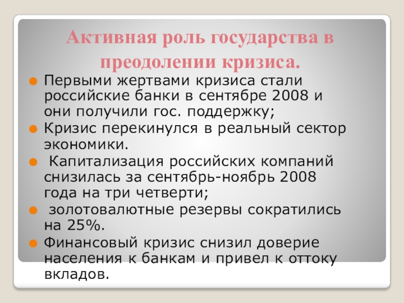 Активная роль государства в преодолении кризиса.