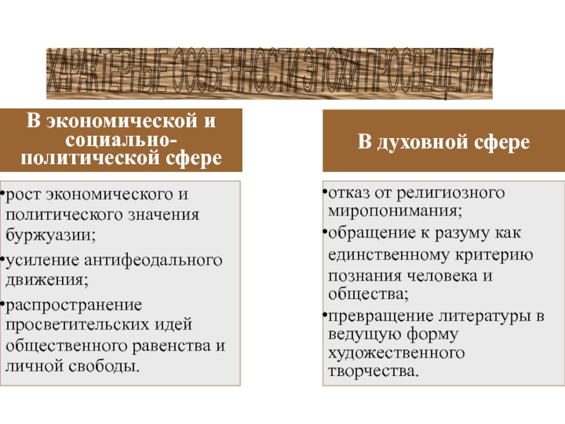ХАРАКТЕРНЫЕ ОСОБЕННОСТИ ЭПОХИ ПРОСВЕЩЕНИЯ
