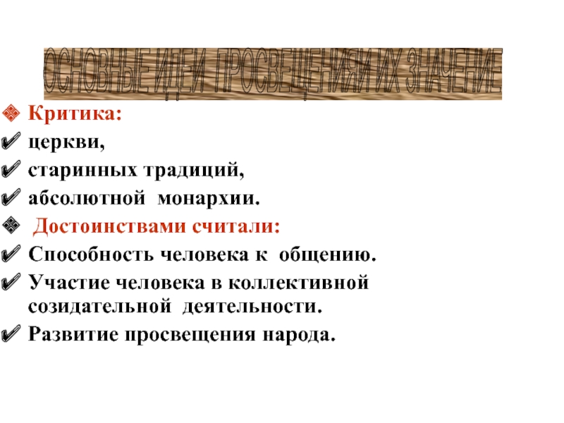 ОСНОВНЫЕ ИДЕИ ПРОСВЕЩЕНИЯИ ИХ ЗНАЧЕНИЕ