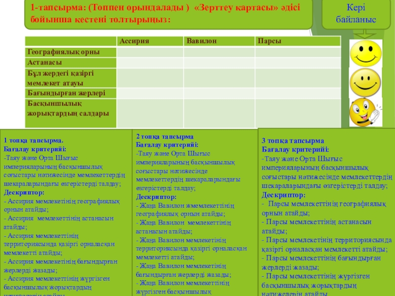 - Ассирия мемлекетінің географиялық орнын атайды;