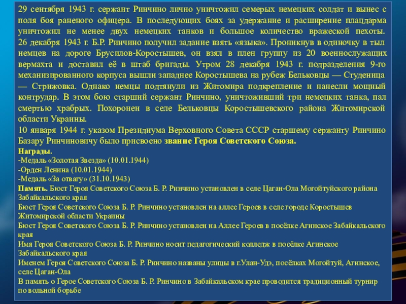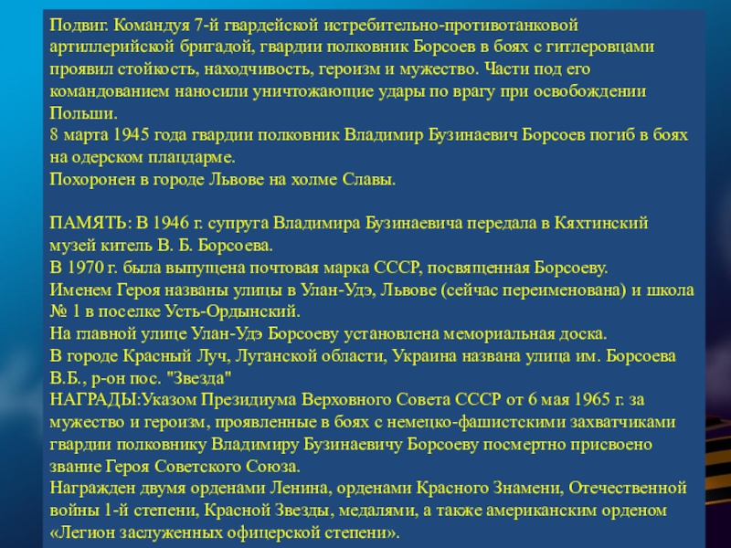 Слайд 15БОРСОЕВ ВЛАДИМИР БУЗИНАЕВИЧ-(1906—1945) — участник Великой Отечественной войны, Герой Советского Союза