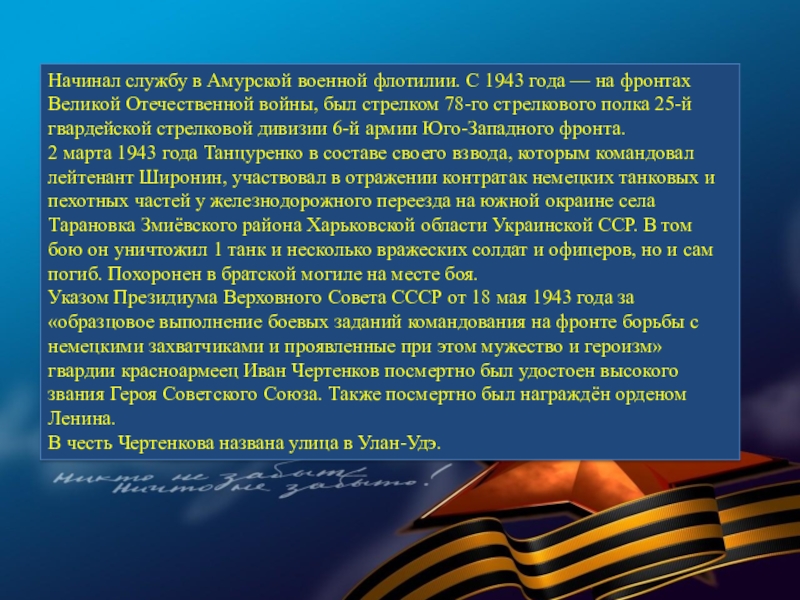 Слайд 64ИВАН МАТВЕЕВИЧ ЧЕРТЕНКОВ - (1912—1943) — красноармеец Рабоче-крестьянской Красной Армии, участник