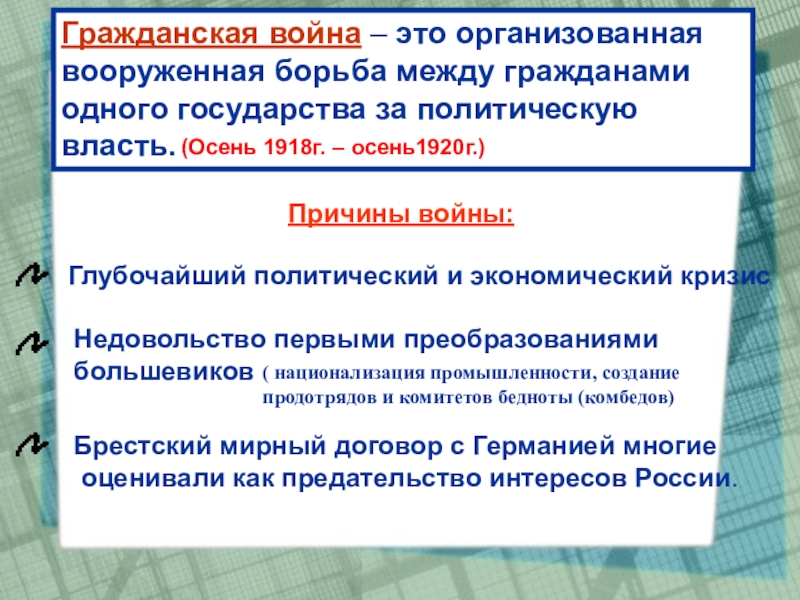 власти в годы гражданской войны стала политика
