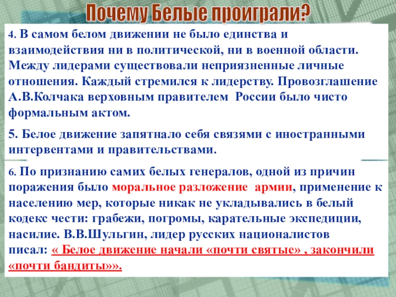 5. Белое движение запятнало себя связями с иностранными