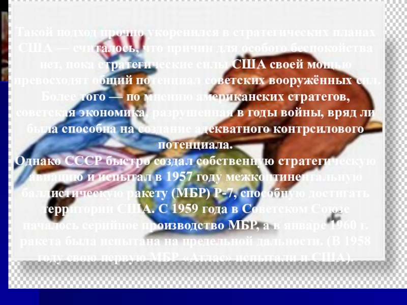 Слайд 8Такой подход прочно укоренился в стратегических планах США — считалось, что причин