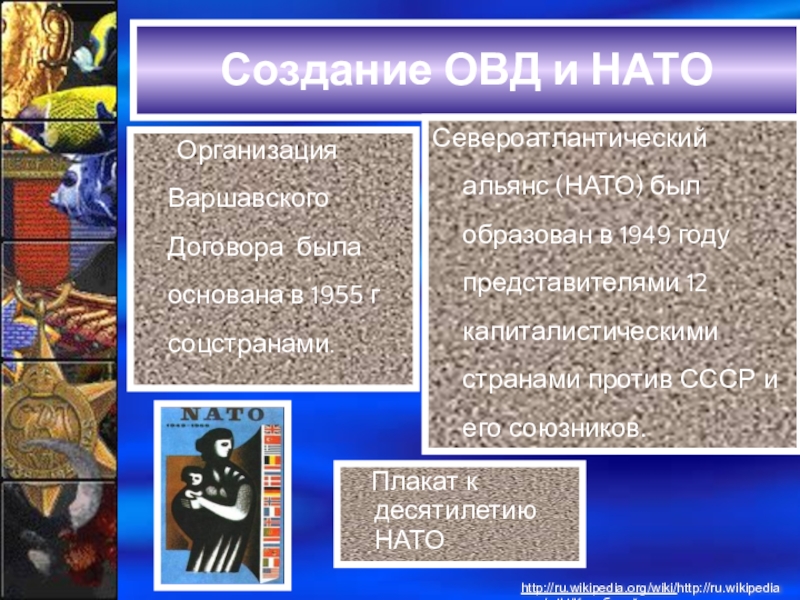 Североатлантический альянс (НАТО) был образован в 1949 году представителями 12 капиталистическими странами против СССР и его союзников.