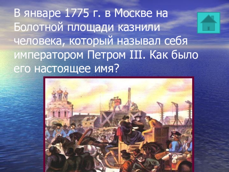 Слайд 26В январе 1775 г. в Москве на Болотной площади казнили человека,