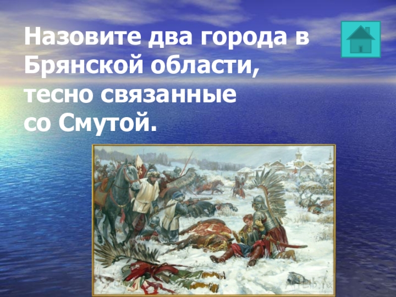 Слайд 9 Назовите два города в Брянской области, тесно связанные со Смутой.