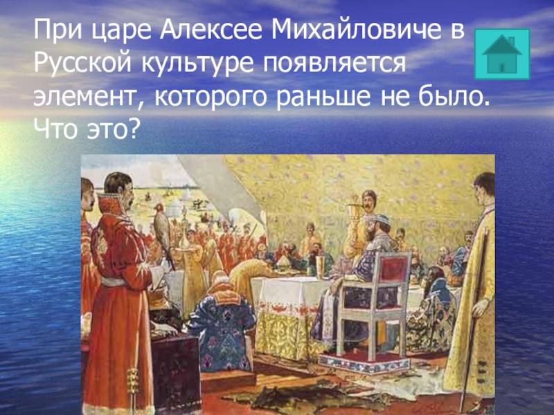 Слайд 28При царе Алексее Михайловиче в Русской культуре появляется элемент, которого раньше