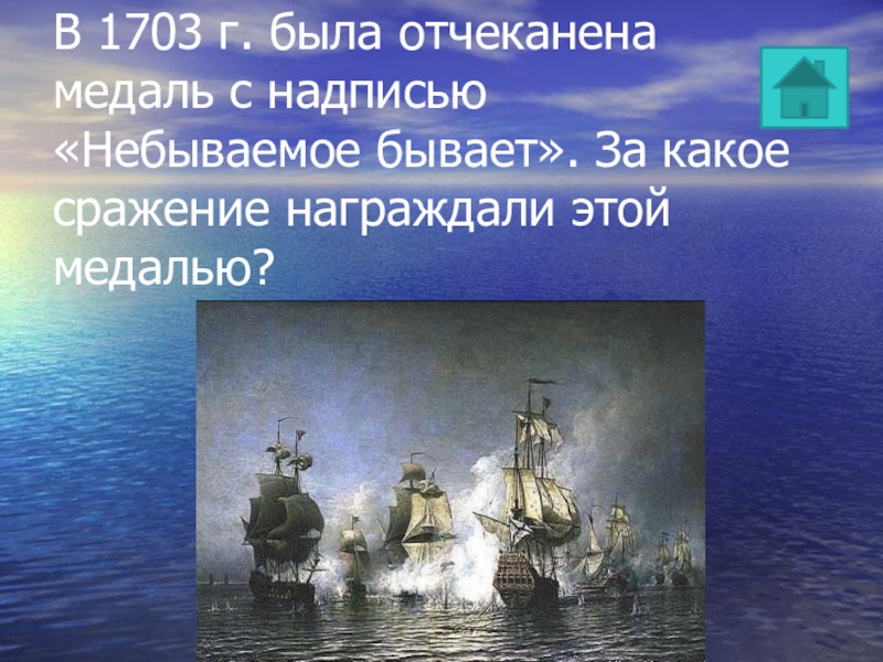 В 1703 г. была отчеканена медаль с надписью  «Небываемое бывает». За какое сражение награждали этой медалью?