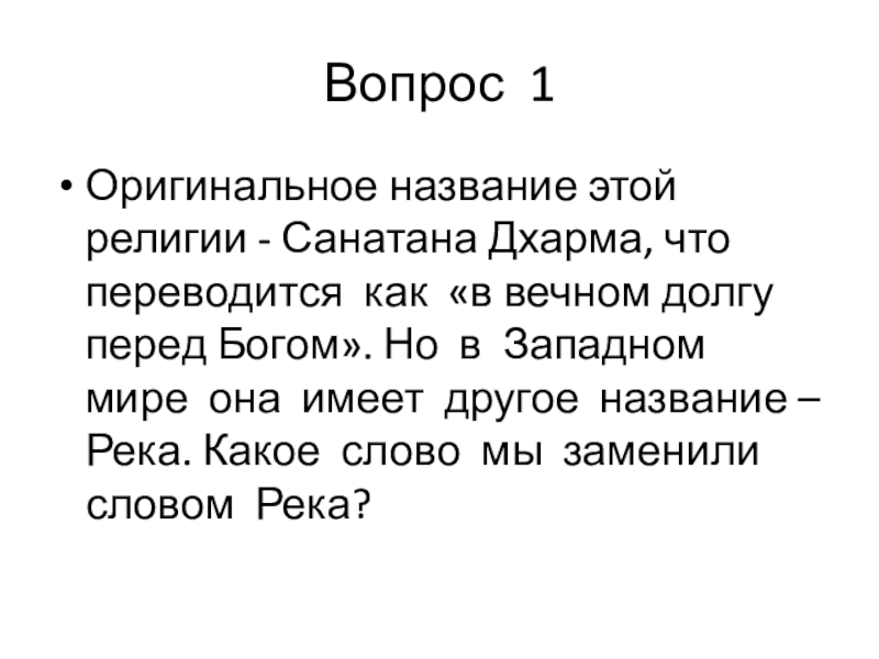 как «в вечном долгу перед Богом». Но в Западном мире она имеет другое название – Река. Какое слово мы заменили словом Река?