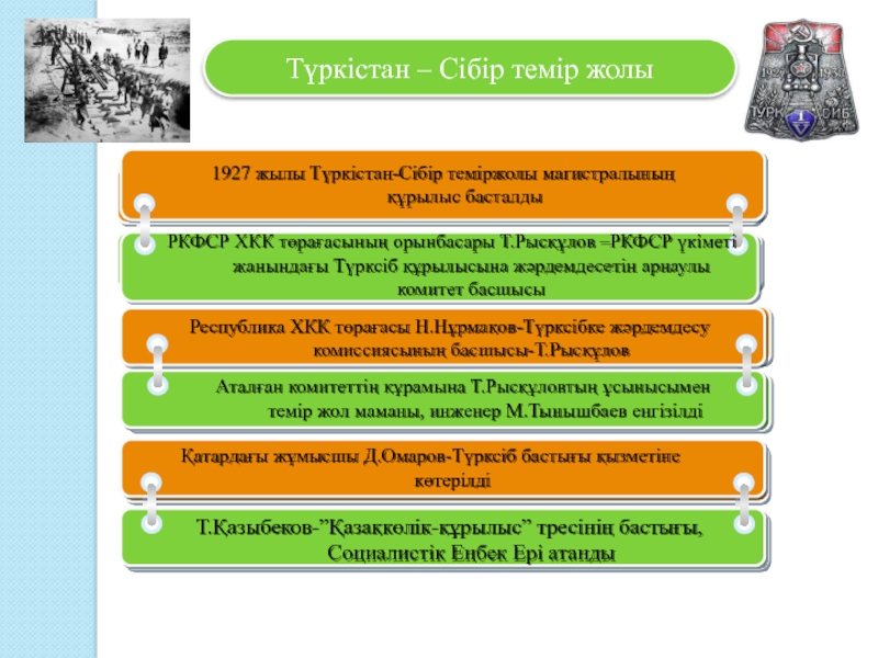 Республика ХКК төрағасы Н.Нұрмақов-Түрксібке жәрдемдесу комиссиясының басшысы-Т.Рысқұлов