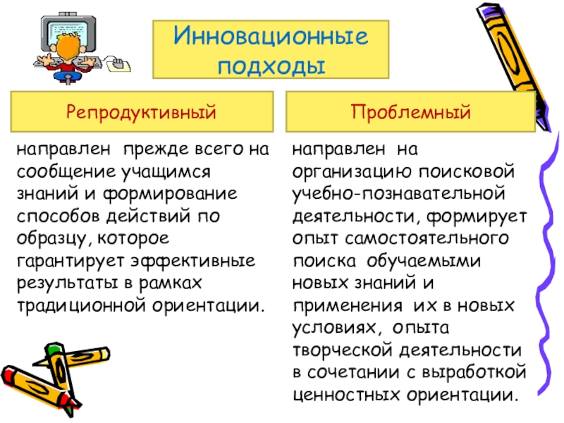 направлен на организацию поисковой учебно-познавательной деятельности, формирует опыт самостоятельного поиска обучаемыми новых знаний и применения их в новых условиях, опыта творческой деятельности в сочетании с выработкой ценностных ориентации.