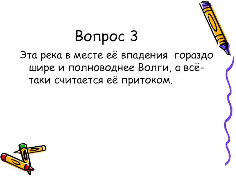Вопрос 3Эта река в месте её впадения гораздо шире и полноводнее Волги, а всё-таки считается её притоком.