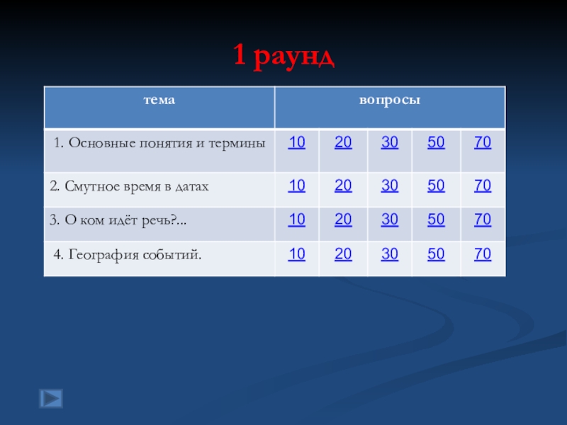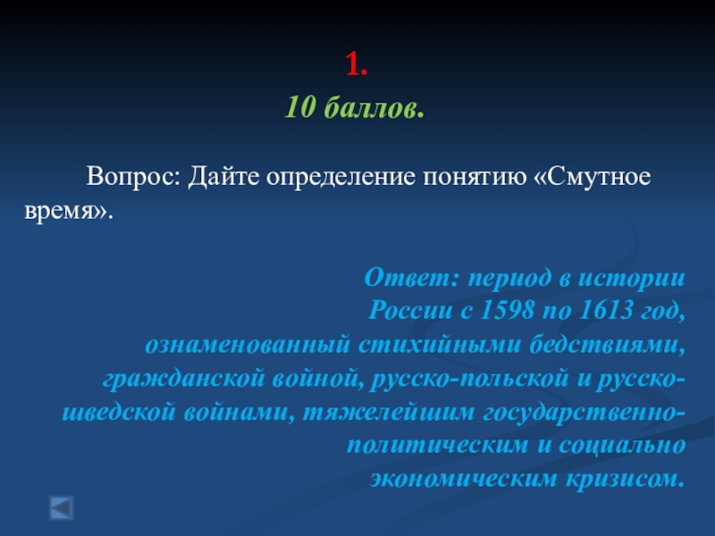 1.  10 баллов.     Вопрос: Дайте определение понятию «Смутное время».