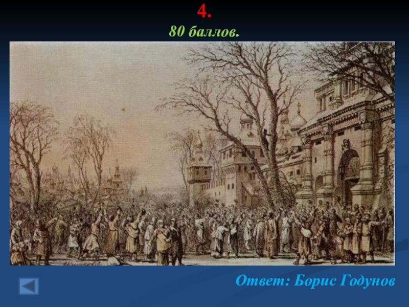 4. 80 баллов. Вопрос: имя какого царя носит опера Модеста Петровича Мусоргского впервые показанная на сцене в