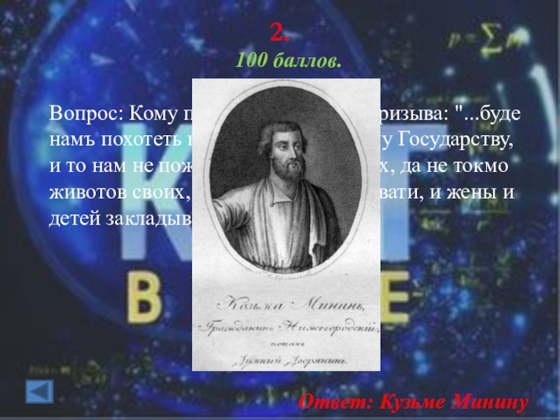 2. 100 баллов. Вопрос: Кому принадлежат слова призыва: