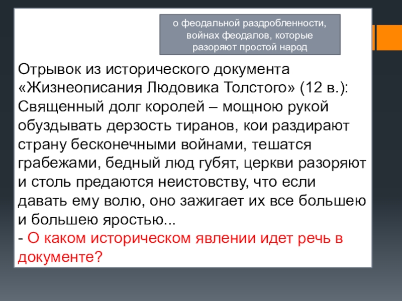 о феодальной раздробленности, войнах феодалов, которые разоряют простой народ
