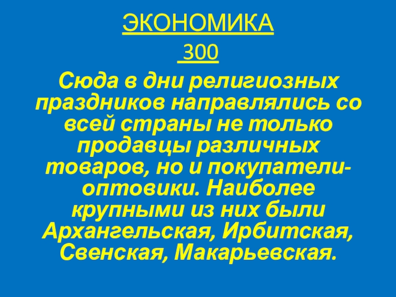 только продавцы различных товаров, но и покупатели-оптовики. Наиболее крупными из них были Архангельская, Ирбитская, Свенская, Макарьевская.