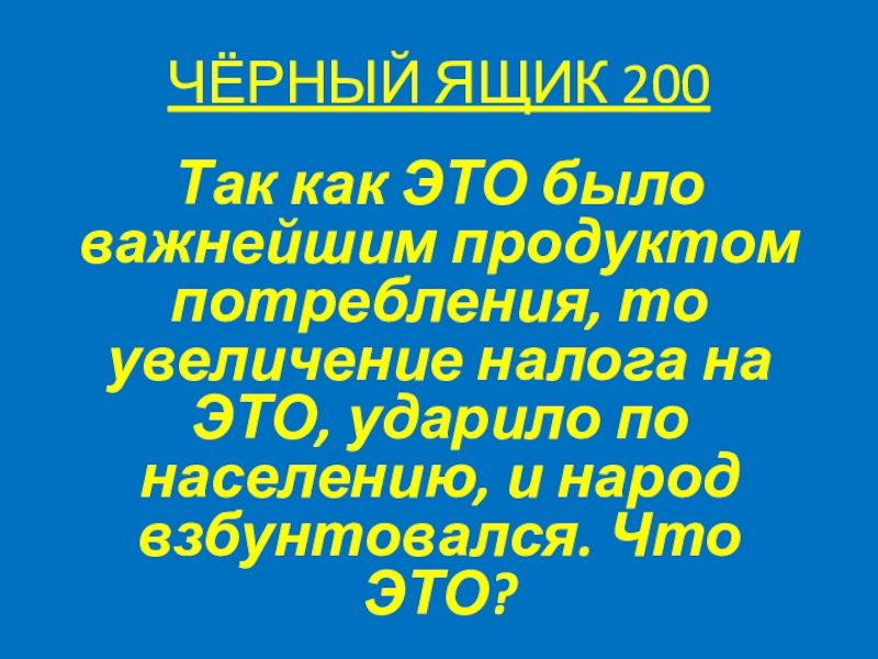 налога на ЭТО, ударило по населению, и народ взбунтовался. Что ЭТО?