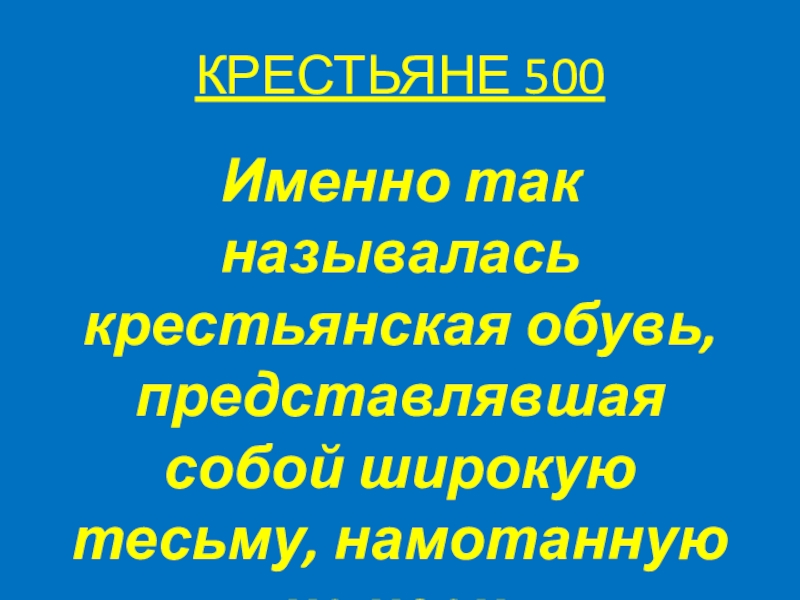 Именно так называлась крестьянская обувь, представлявшая собой широкую тесьму, намотанную