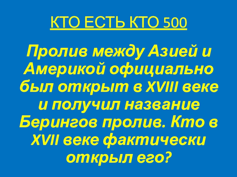 в XVIII веке и получил название Берингов пролив. Кто в XVII веке фактически открыл его?