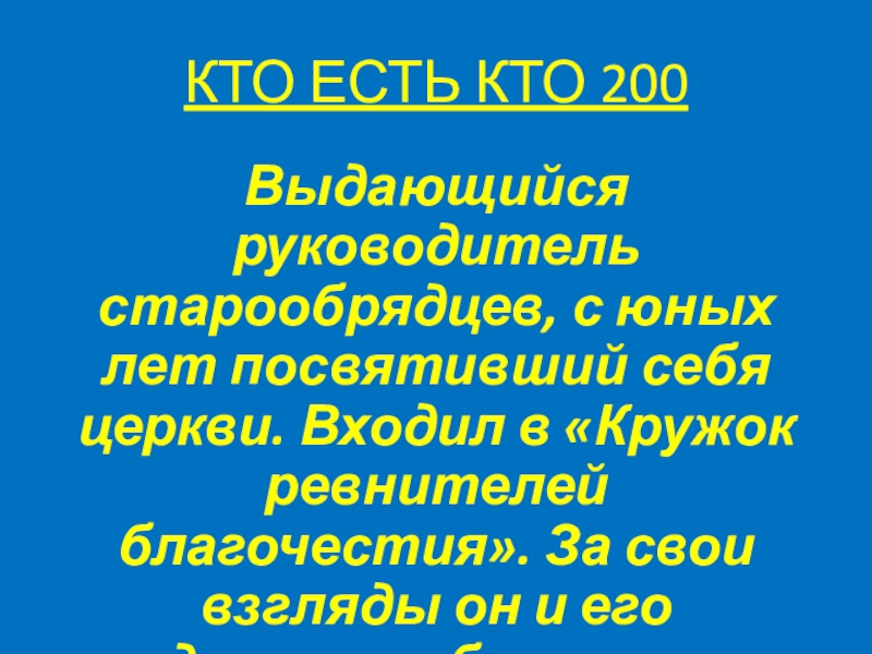 Выдающийся руководитель старообрядцев, с юных лет посвятивший себя