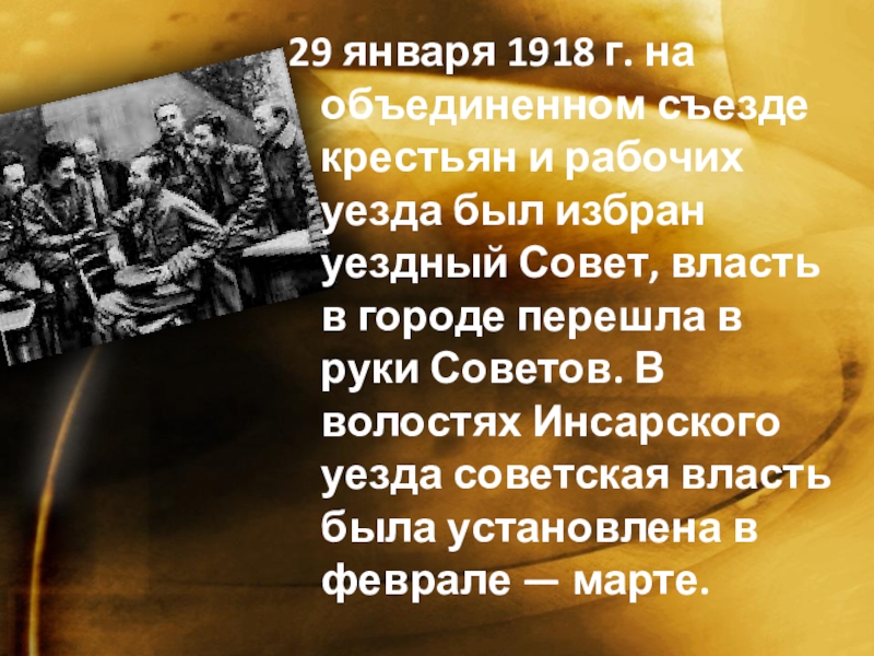 Слайд 2329 января 1918 г. на объединенном съезде крестьян и рабочих уезда