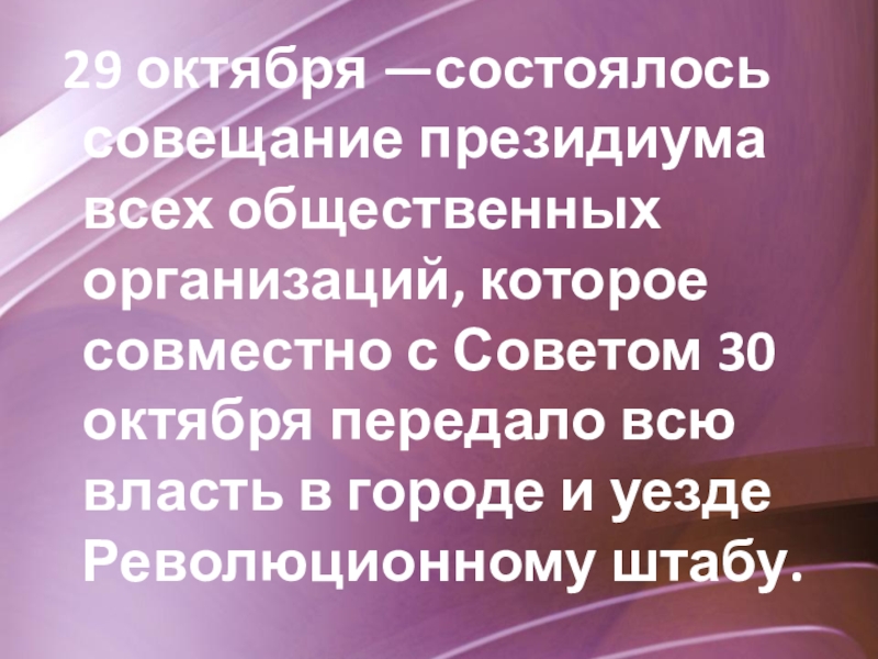 Слайд 20 29 октября —состоялось совещание президиума всех общественных организаций, которое совместно