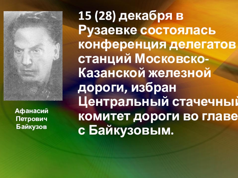 Московско-Казанской железной дороги, избран Центральный стачечный комитет дороги во главе с Байкузовым.