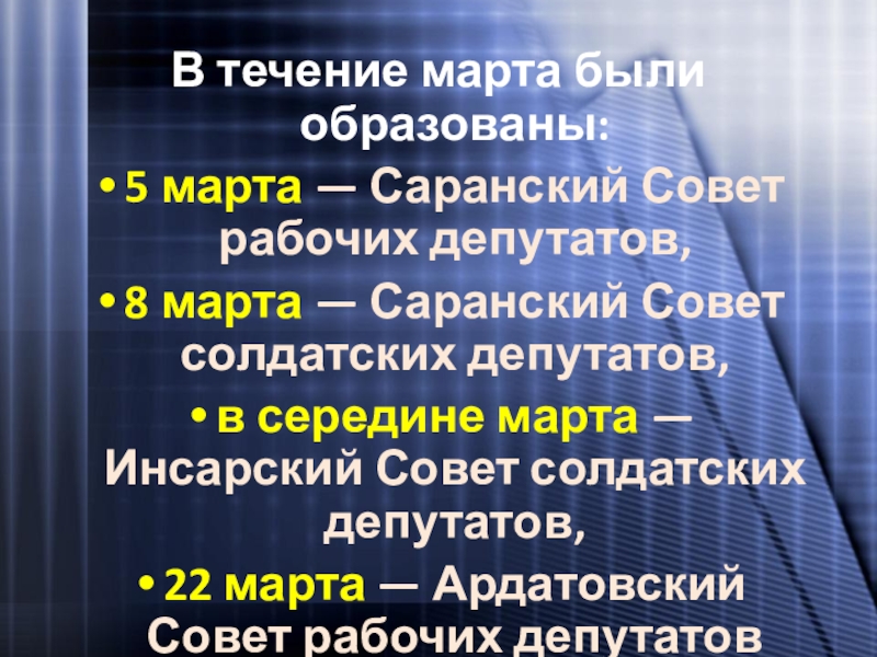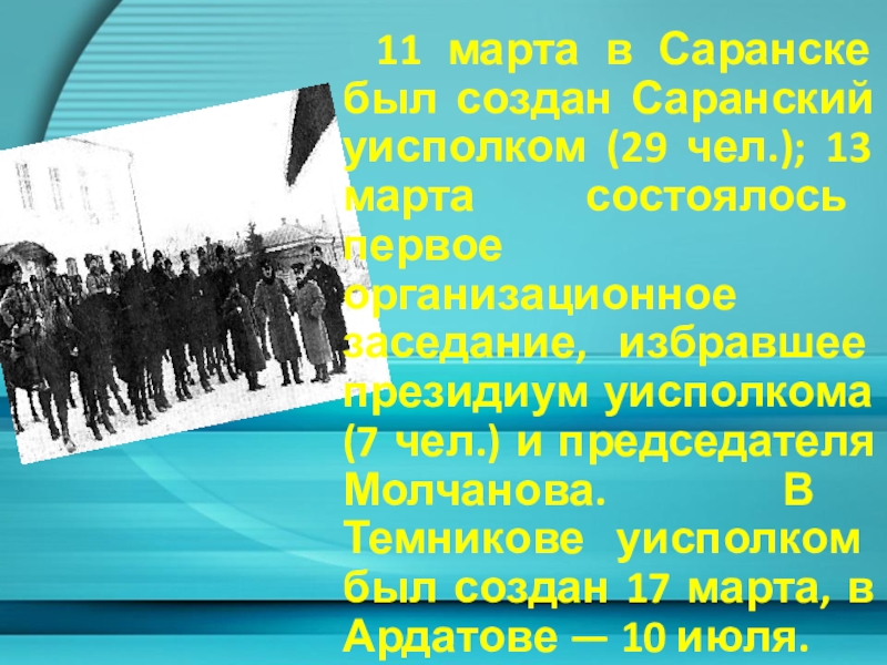 Слайд 1311 марта в Саранске был создан Саранский уисполком (29 чел.); 13
