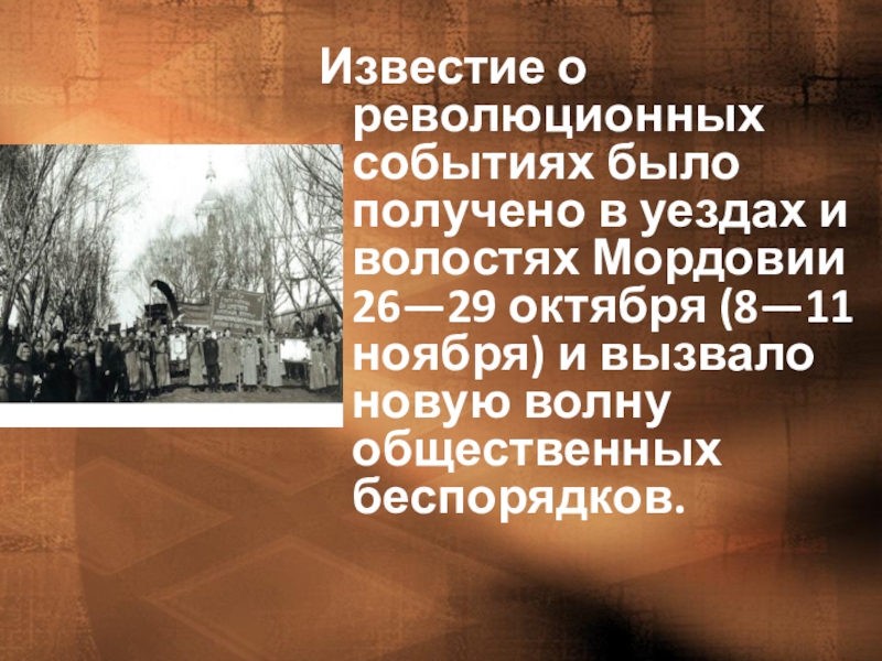 Слайд 19Известие о революционных событиях было получено в уездах и волостях Мордовии