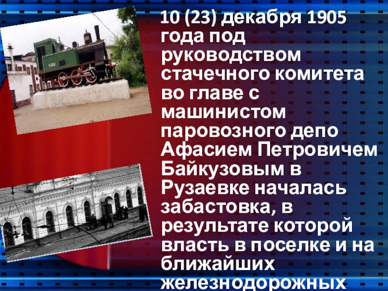 Слайд 4 10 (23) декабря 1905 года под руководством стачечного комитета