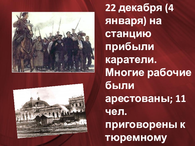Слайд 5 22 декабря (4 января) на станцию прибыли каратели. Многие