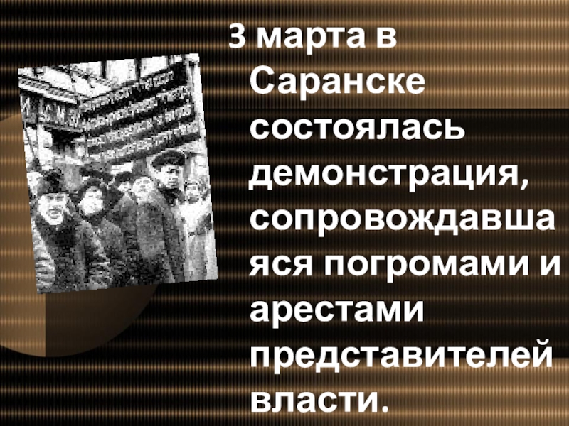 Слайд 103 марта в Саранске состоялась демонстрация, сопровождавшаяся погромами и арестами представителей