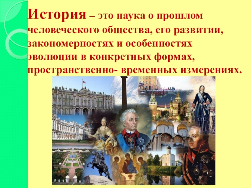 Слайд 7История – это наука о прошлом человеческого общества, его развитии, закономерностях