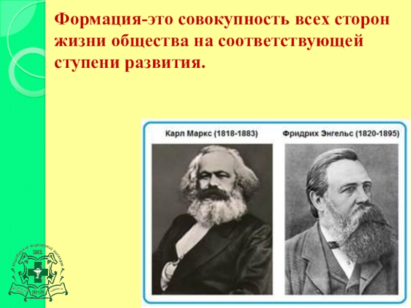 Слайд 10Формация-это совокупность всех сторон жизни общества на соответствующей ступени развития.